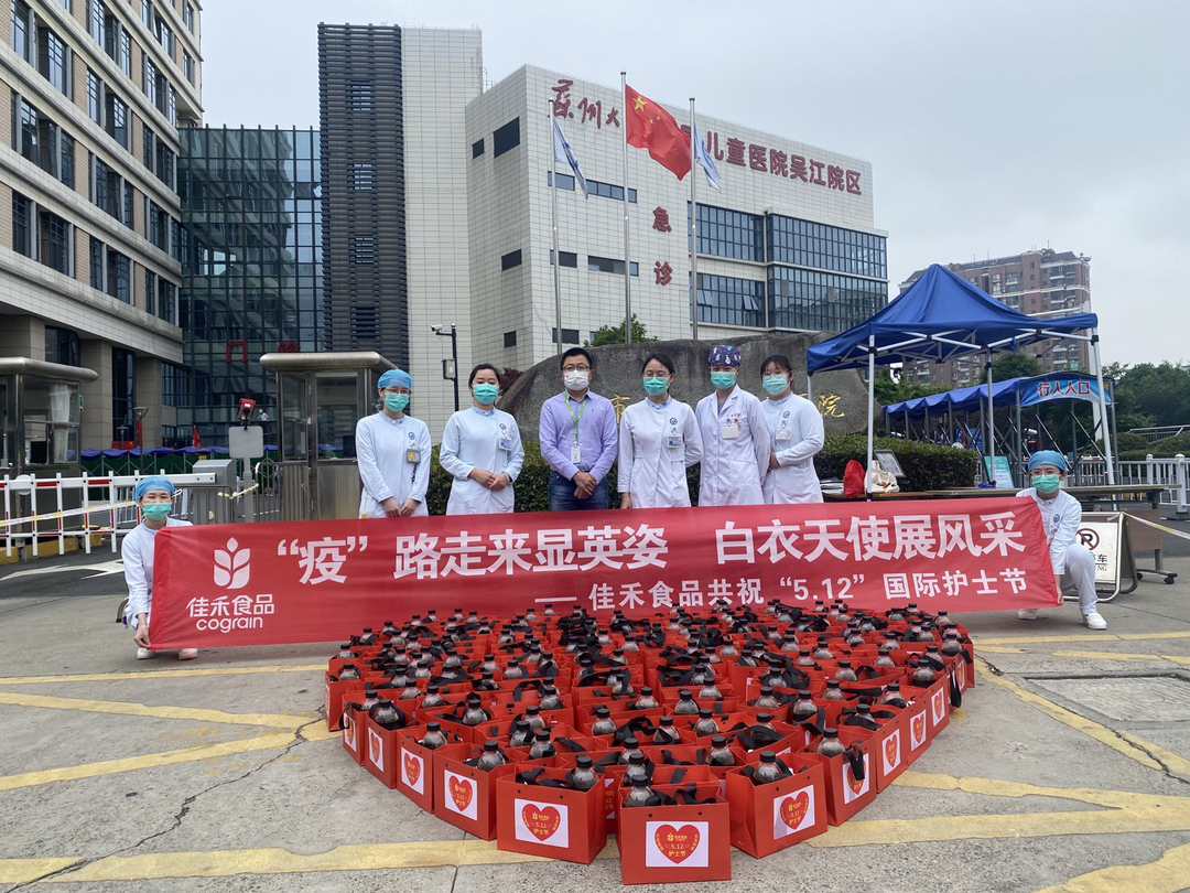 今天是国际护士节,佳禾食品走进区儿童医院,向奋战在抗疫一线的医护人员表达崇高的敬意,为奋战在防控一线的医护人员奉上公司冷萃咖啡、燕麦艿等物资。
