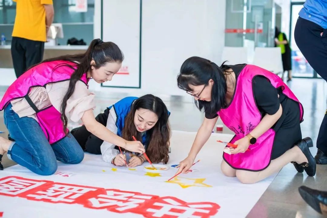 活动第二阶段,党员分组开展“共绘蓝图启新章”活动,拿起画笔共同绘制主题为“喜迎二十大 永远跟党走”的巨幅图画。