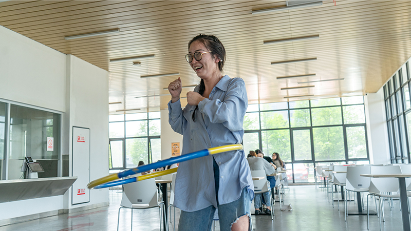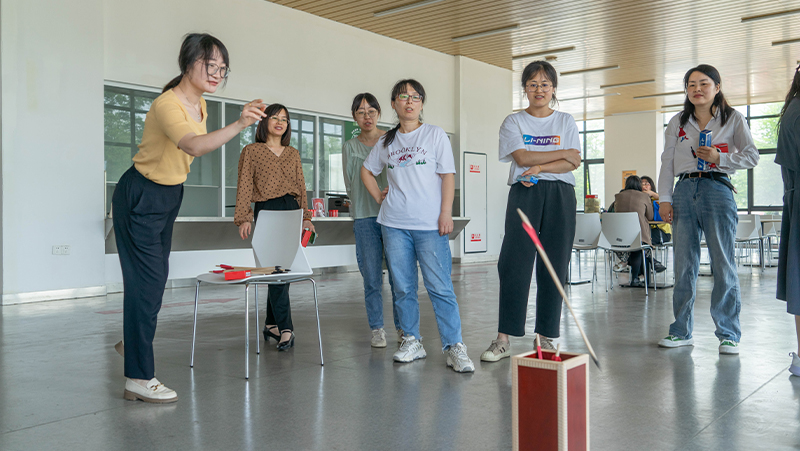 伴随着裁判的一声令下,呼啦圈挑战赛、投壶赛、弹球比赛同步开启PK模式。呼啦圈30秒限时,参赛人员快速摆动腰胯,用“腰圈”带动“胶圈”,争分夺秒间,大家玩得不亦乐乎,也逗得全场欢声笑语不断。作为全场最受欢迎的两个比赛项目,投壶、弹球充分考验大家的手劲、眼力。各路“江湖豪杰”陆续“应战”,你一个“箭”步,我一次“颠”弹,稳稳甩下对手,成功将“前浪们”挤下榜单。